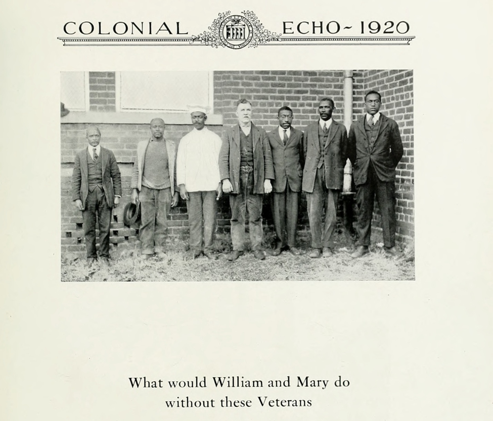 My second find is three pictures in Colonial Echo yearbooks of Black workers at W&M in 1918, 1920, and 1921. The first shows Henry Billups and another man; the caption is appreciative: