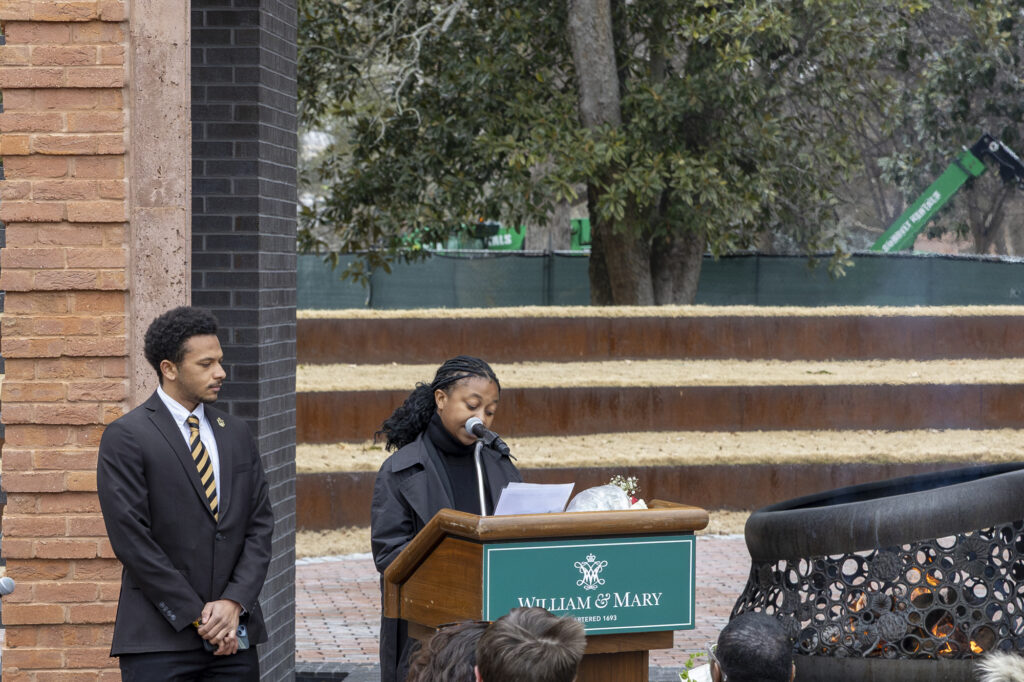 On W&M’s 333rd Charter Day, to say that my heart swelled as I watched community members make their way to the Hearth: Memorial to the Enslaved would be an understatement. Still, it is the closest language I have for the immense pride and quiet fulfillment I felt witnessing people arrive bundled and layered against the cold (I had on three layers myself), carrying flowers, instruments, and hearts full of tribute for those enslaved by the Alma Mater of the Nation.